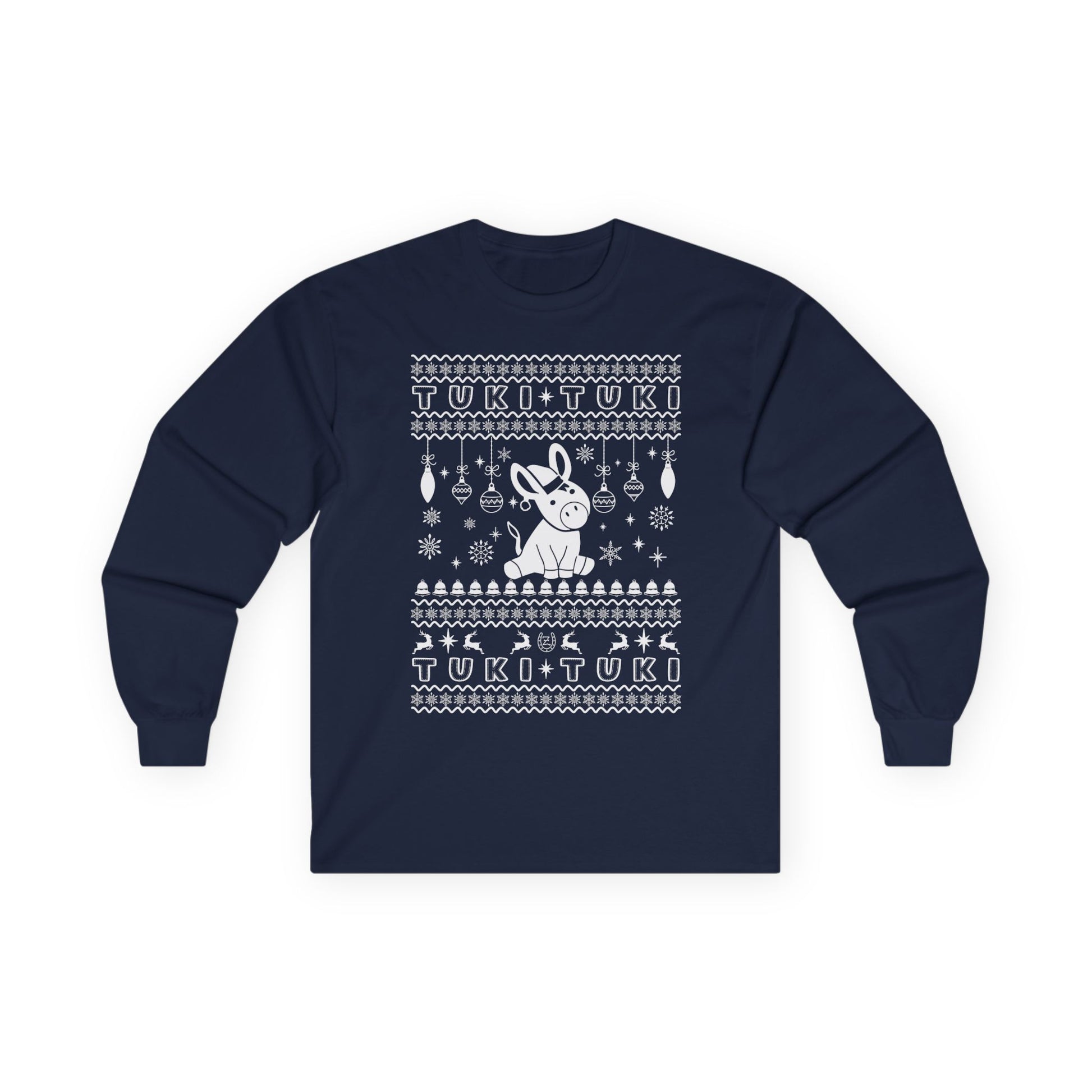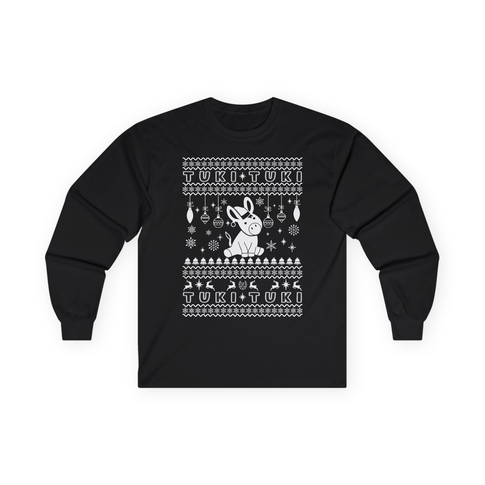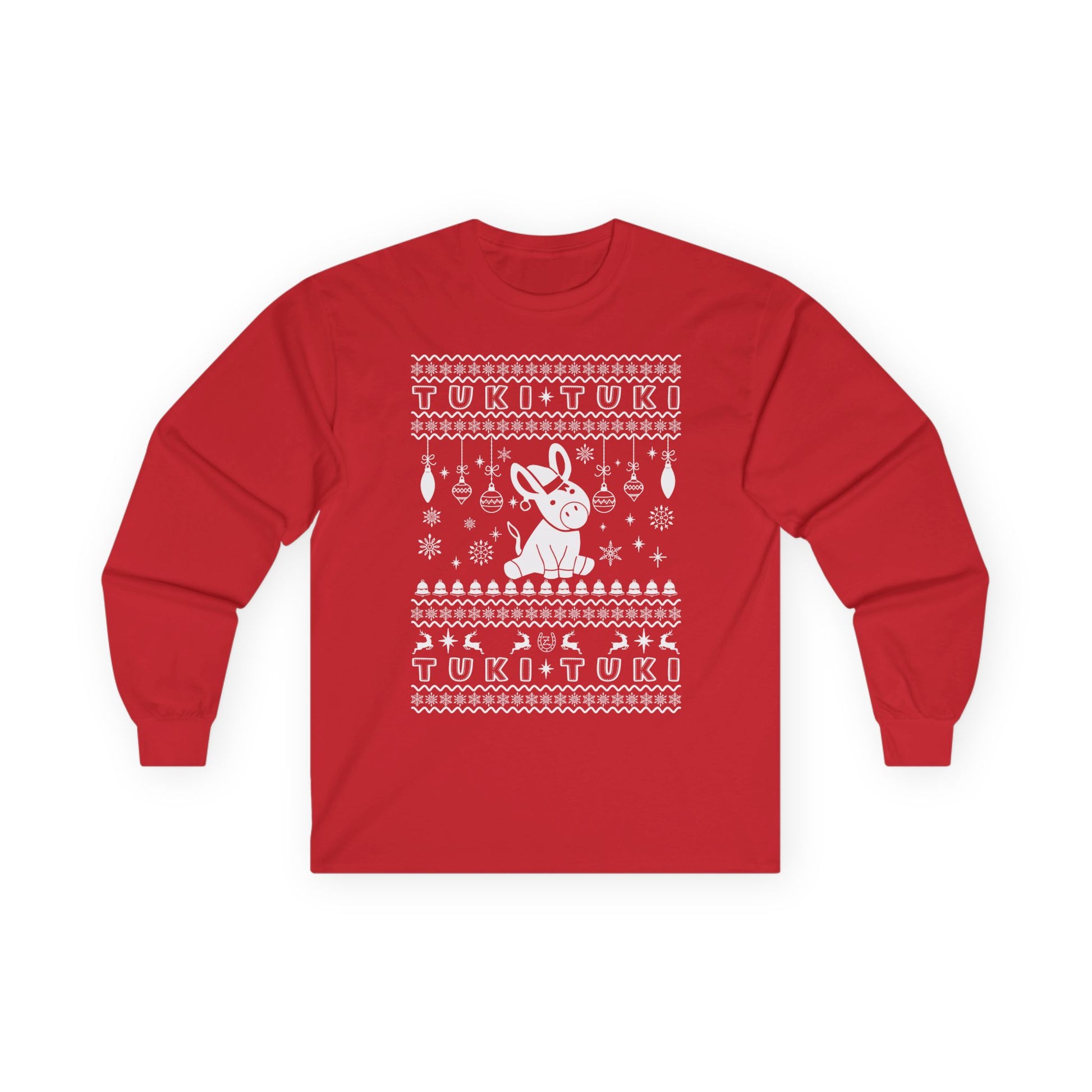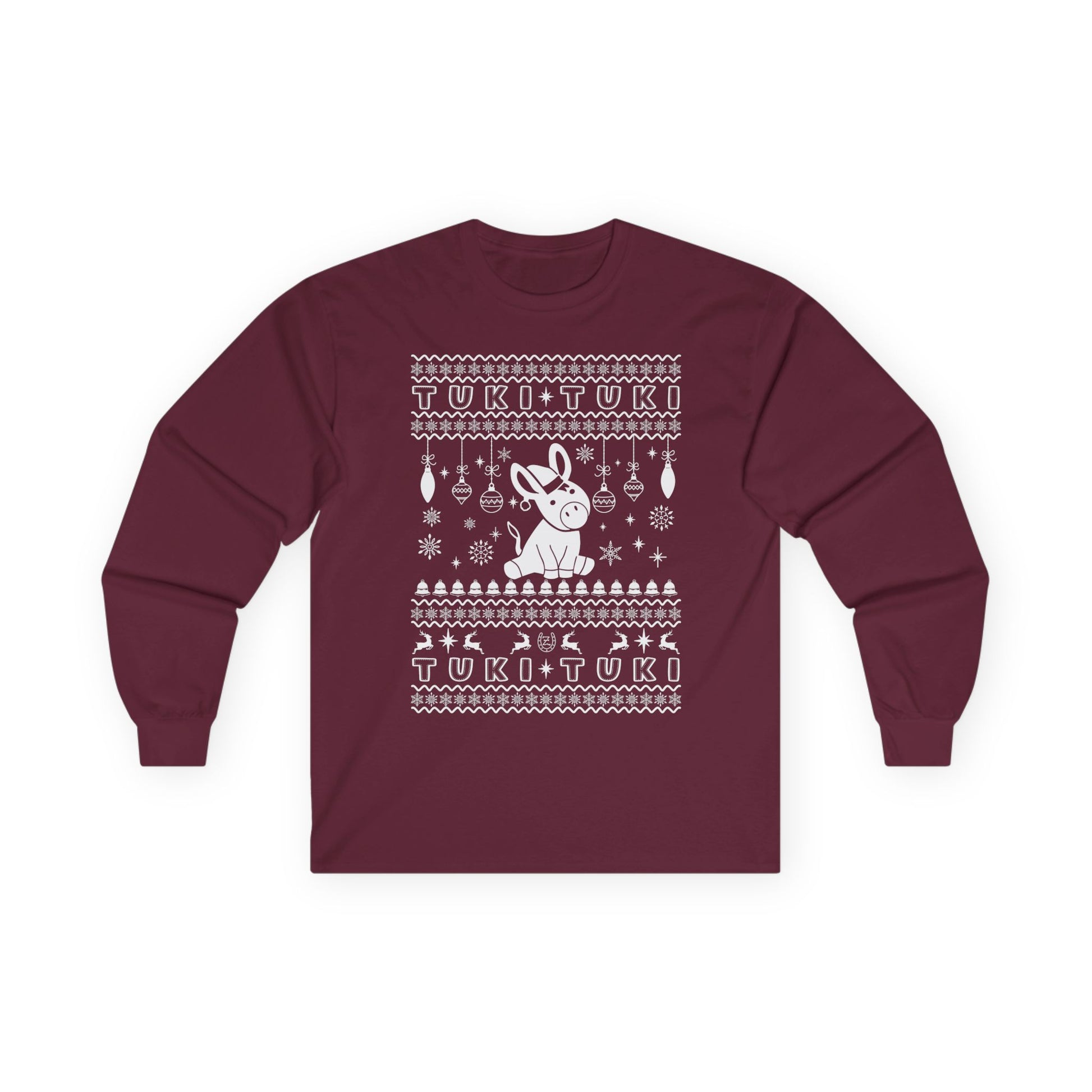 This long-sleeve tee brings cozy, vintage energy to quiet winter nights. Soft-but-substantial cotton, a ribbed collar, and tubular knit give it a lived-in look that settles in like an old favorite. The front design mixes playful charm and seasonal motifs — a sweet rabbit framed by ornament and knit-inspired rows — so it reads like a hand-knit sweater translated into graphic form. Wear it layered over a flannel on crisp evenings or alone while sipping cocoa and wrapping presents. It’s cut with a classic fit and slightly shorter sizing, so size up for a relaxed, drapey feel. Compliant with EU REACH standards and finished with a sewn-in label, this shirt is built for repeat wears and quiet celebrations.